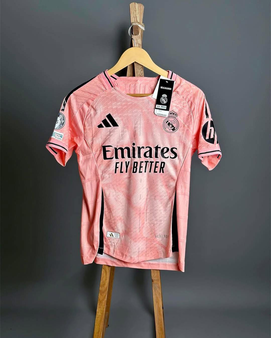 Sur le devant, le logo emblématique du Real Madrid et le sponsor officiel sont sublimés par une finition premium, tandis que les détails sublimés sur les épaules et les côtés ajoutent une touche moderne. Ce maillot est un hommage à l’histoire glorieuse du club tout en étant résolument tourné vers l’avenir.